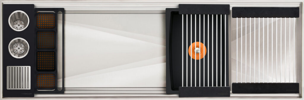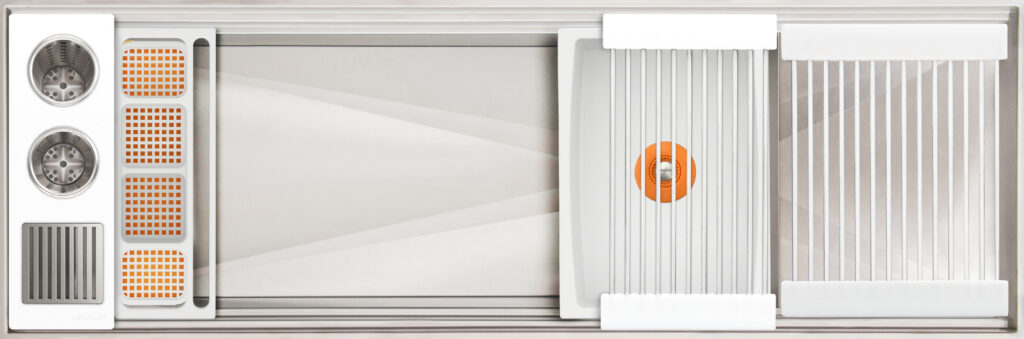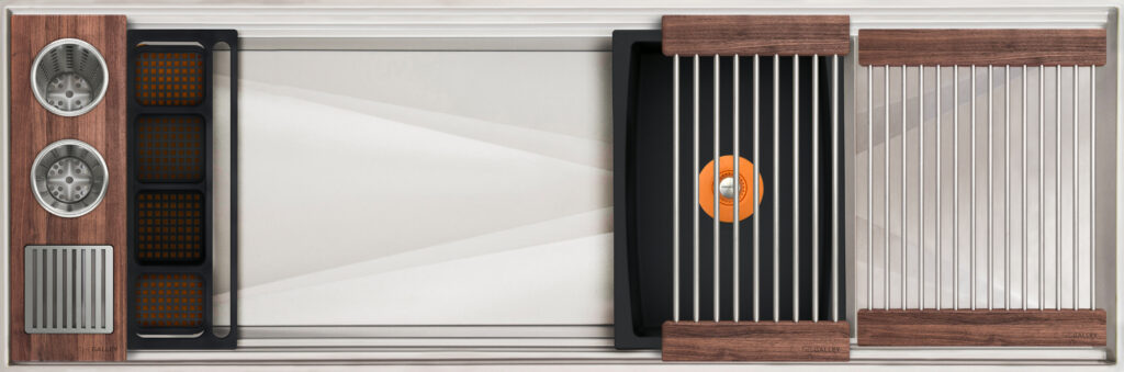 Workstation² — the next-generation evolution of the Galley Workstation — features a three-tier design with an integrated Upper Tier. Engineered for precision and smooth performance, it fits any countertop thickness and upgrades all the trusted features of the original—SilentArmor™, StarGroove™ drain, and premium finishes—for effortless, next-level precision.