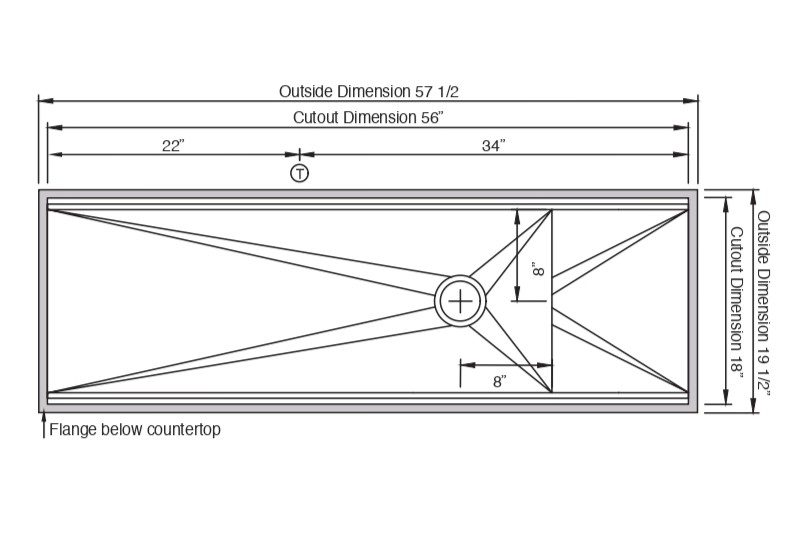 • Outside dimensions: 57 1/2” x 19 1/2” x 2 1/16”