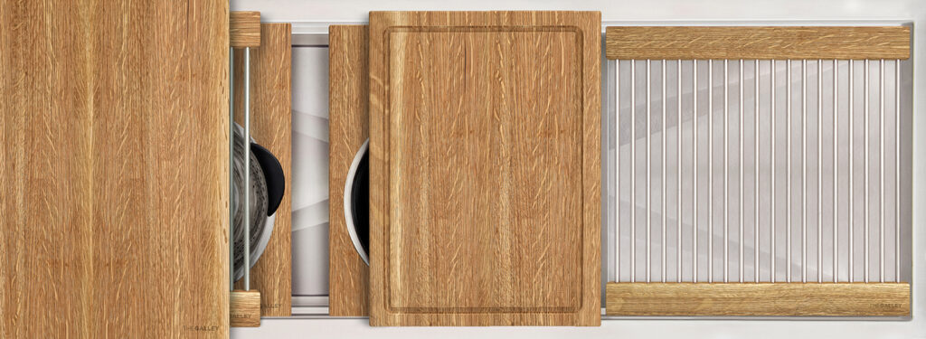 Our matte black Graphite Wood Composite material perfectly complements a contemporary, transitional, or traditional kitchen design and looks wonderful with a wide range of cabinet and countertop colors. This high-performance, dense material is only ½ inch thick, is gentle on your knives, and is easy to clean in the Workstation or in the dishwasher.