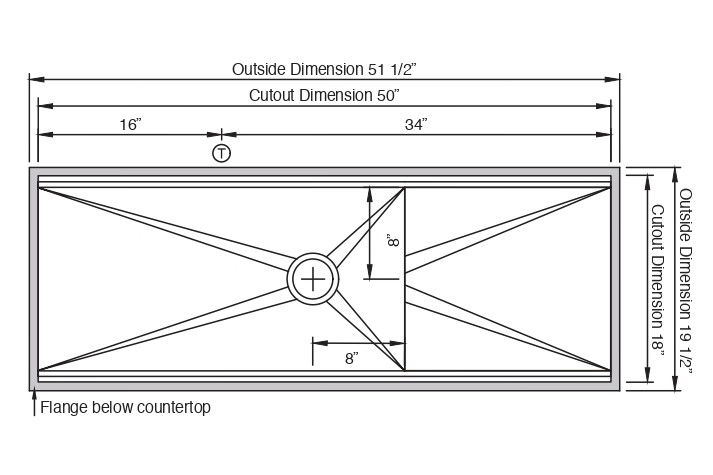 - Outside dimensions: 51 1/2” x 19 1/2” x 2 1/16”