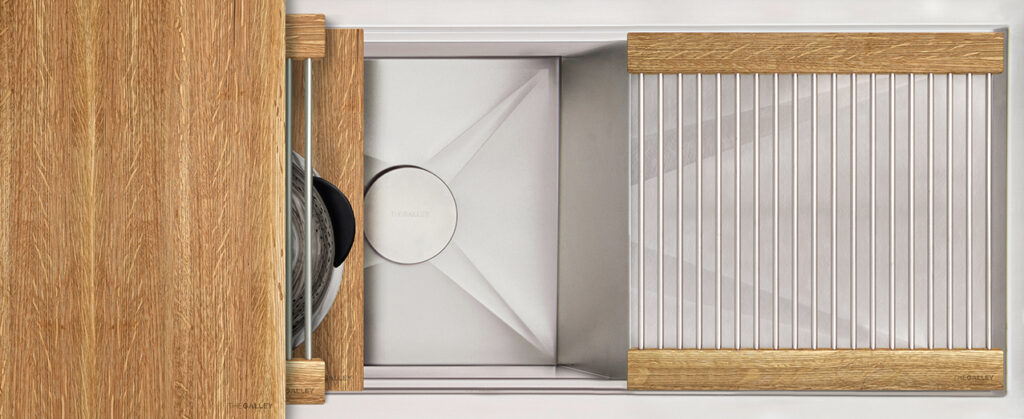 Our matte black Graphite Wood Composite material perfectly complements a contemporary, transitional, or traditional kitchen design and looks wonderful with a wide range of cabinet and countertop colors. This high-performance, dense material is only ½ inch thick, is gentle on your knives, and is easy to clean in the Workstation or in the dishwasher.