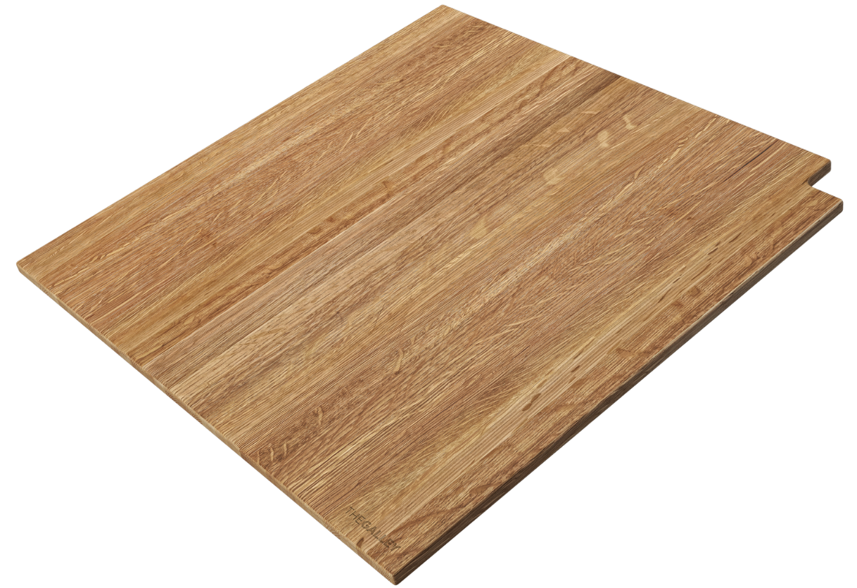 With its light, natural tones and distinctive linear grain, this timeless finish is crafted from the finest hand-selected White Oak. Known for its durability and elegant character, this ¾” thick solid wood material brings a refined, enduring beauty to any space.