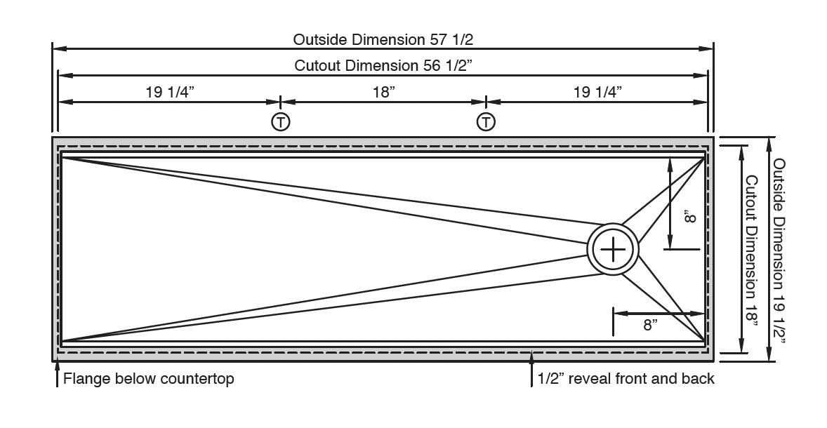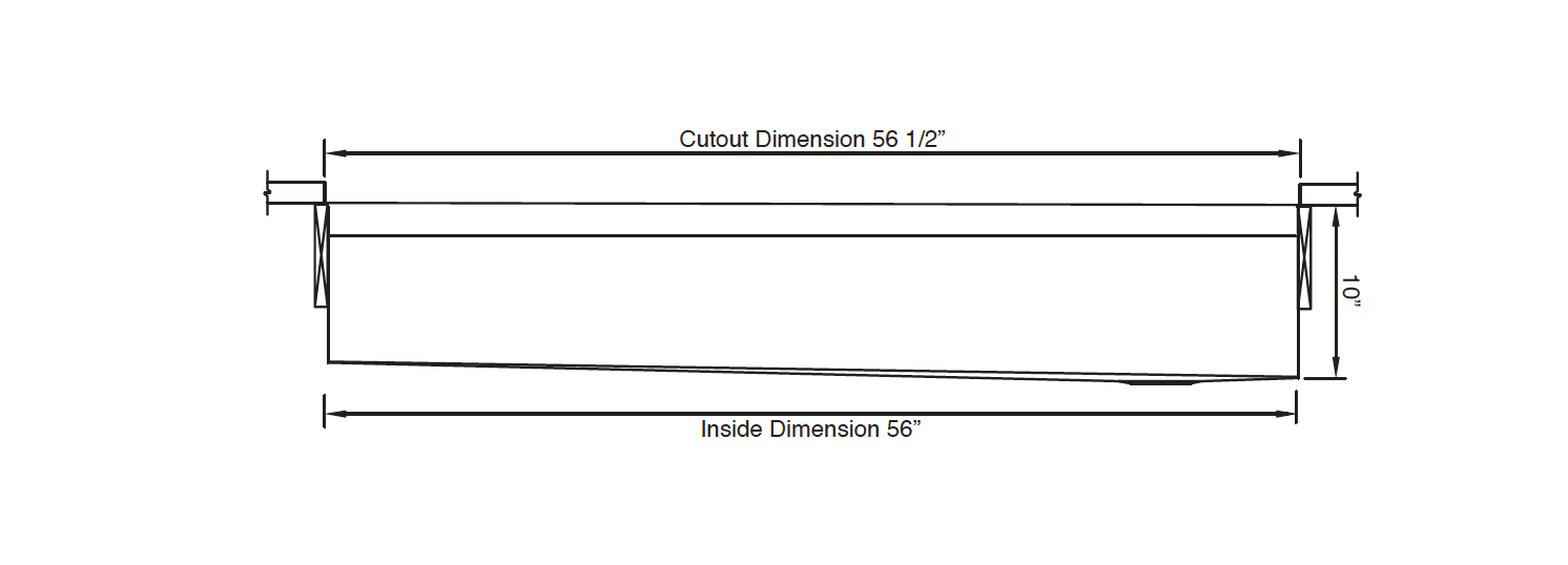 • Countertop cutout: 56” x 18”