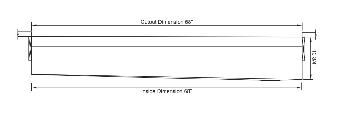 - Countertop cutout: 68 1/2” x 18”