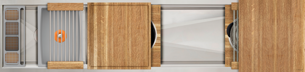 Our matte black Graphite Wood Composite material perfectly complements a contemporary, transitional, or traditional kitchen design and looks wonderful with a wide range of cabinet and countertop colors. This high-performance, dense material is only ½ inch thick, is gentle on your knives, and is easy to clean in the Workstation or in the dishwasher.